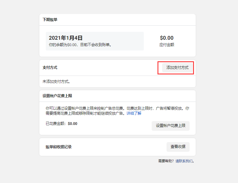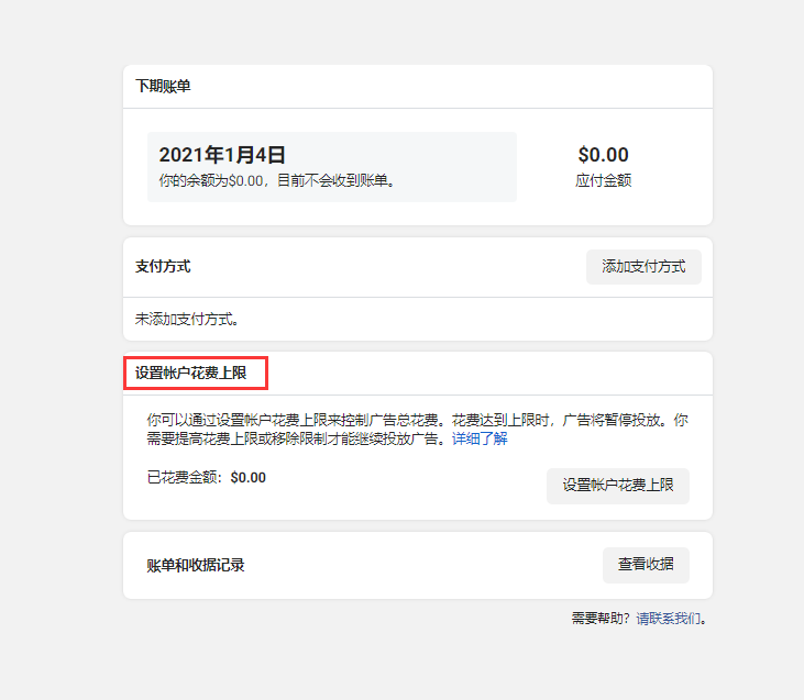 8.添加完支付方式,设置广告账户花费上限