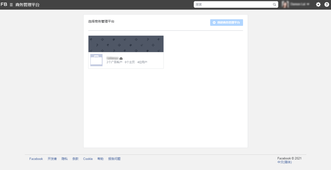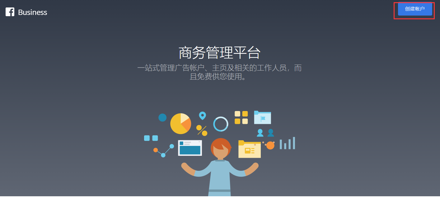2.点击右上角【创建账户】创建商务管理平台账户;