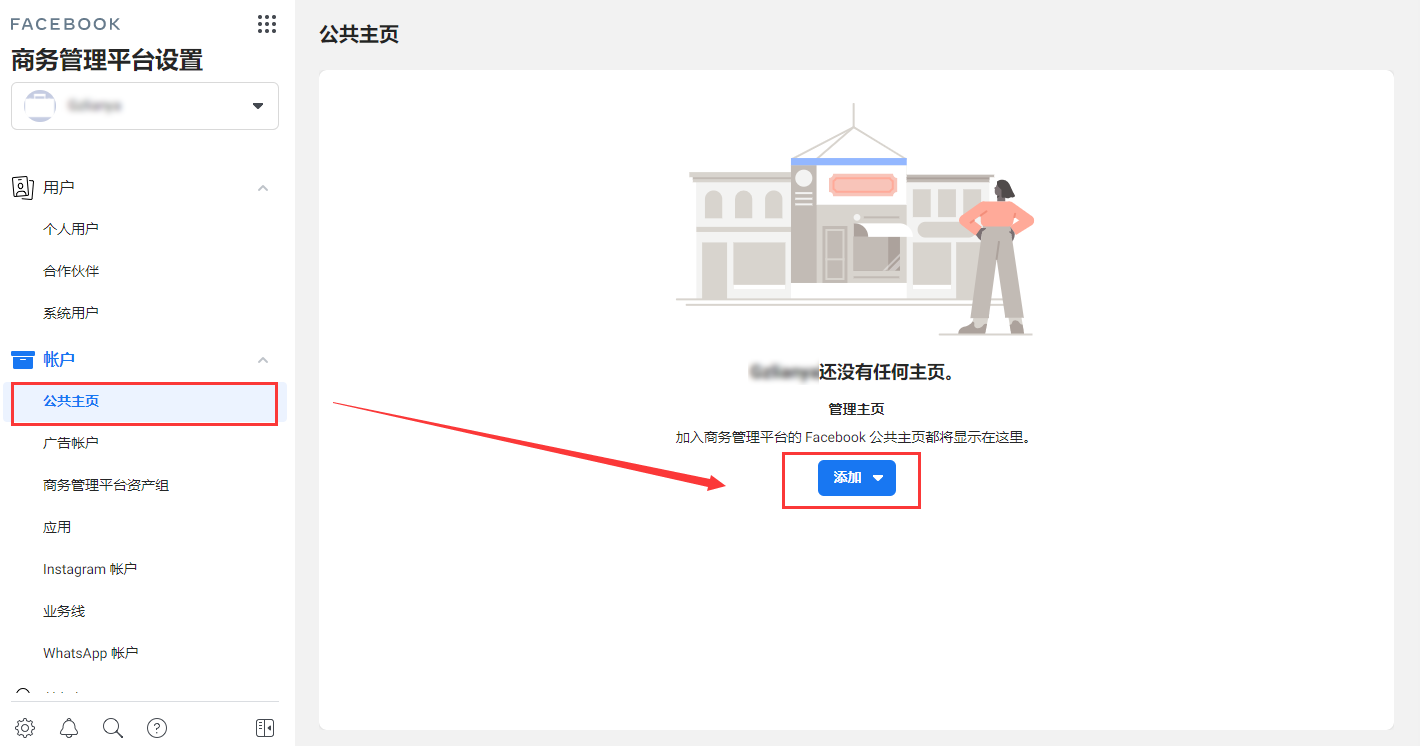 6.在【商务管理平台设置】下创建或添加公共主页;