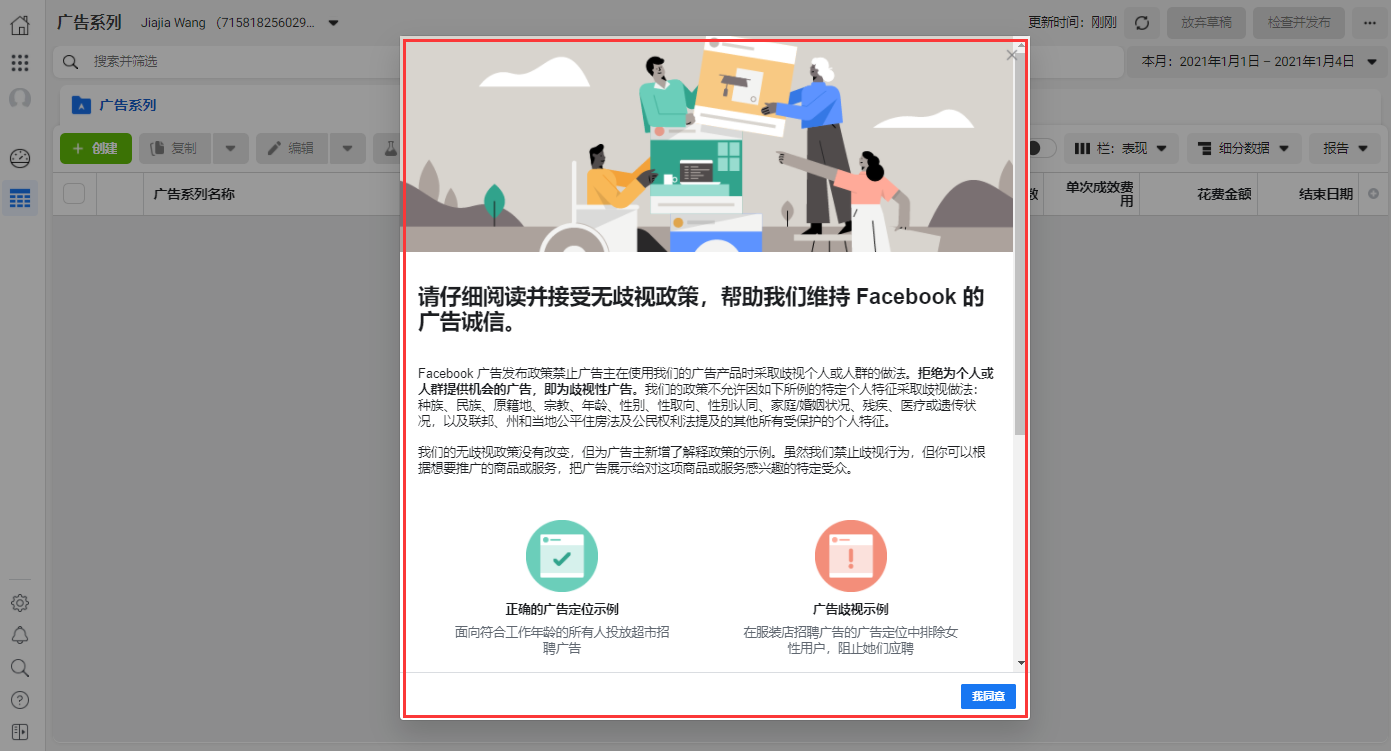 2.同意Facebook的广告政策;