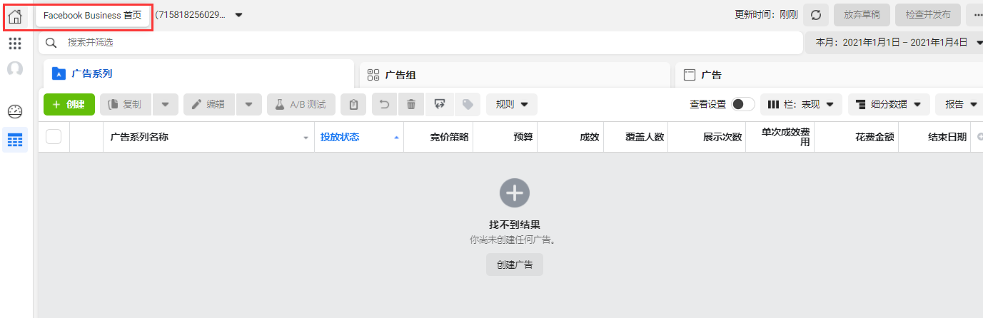 10.进入Facebook广告管理后台,可进行广告创建与发布;