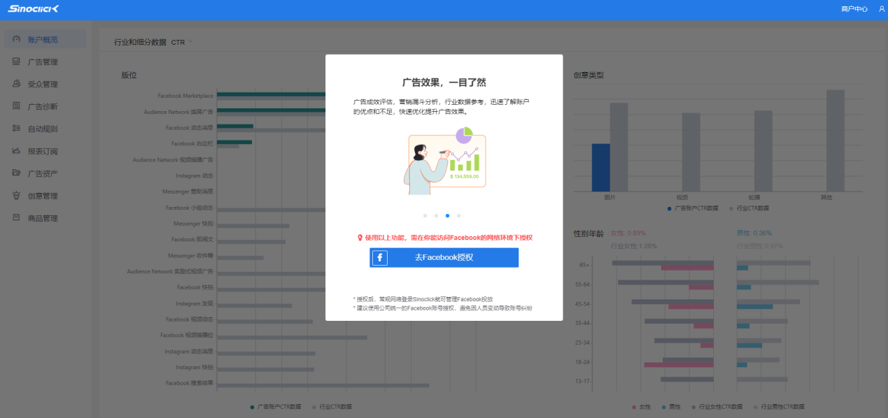 飞书逸途Sinoclick是一款飞书深诺独家技术研发的一站式广告管理系统、跨境营销技术赋能平台。支持包括Facebook、Google、TikTok、Pinterest、Twitter、Snapchat、LinkedIn在内的9大媒体开通企业级广告账户。同时微信、支付宝多渠道充值,人民币支付;支持企业账户支付;自动实时换汇,充值即时到账。可以轻松管理企业广告账户。